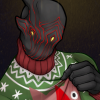 Description: A bust of Stalker from Warframe wearing a Christmas sweater